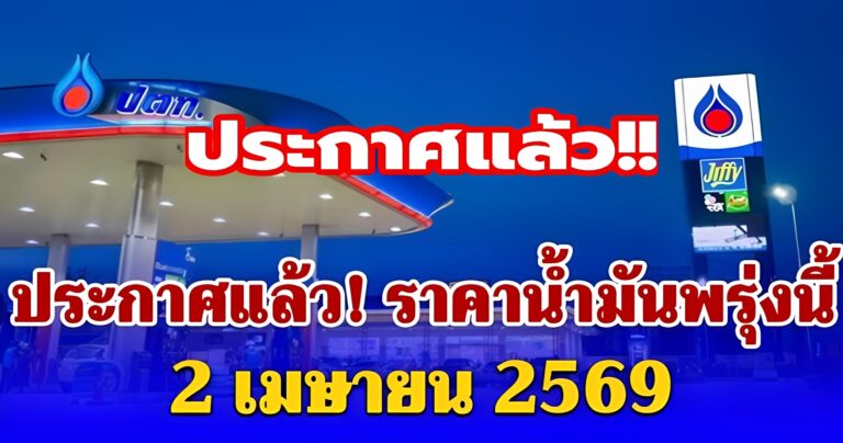 ประกาศแล้ว! ราคาน้ำมันพรุ่งนี้ 2 เมษายน 2569