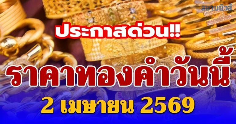 ราคาทองคำวันนี้ 2 เมษายน 2569 ประกาศครั้งที่ 1