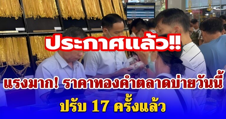 แรงมาก! ราคาทองคำตลาดบ่ายวันนี้ ปรับ 17 ครั้งแล้ว