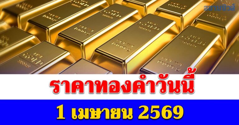 ราคาทองคำวันนี้ 1 เมษายน 2569 ประกาศครั้งที่ 1