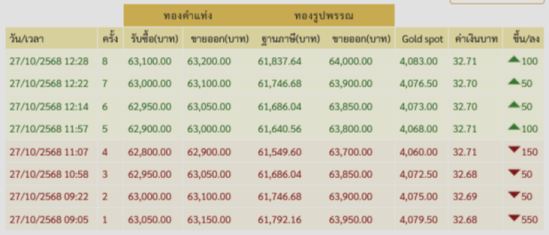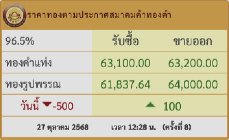 ราคาทองคำ วันที่ 27 ตุลาคม 2568 เวลา 12:28 น. (ครั้งที่ 8)