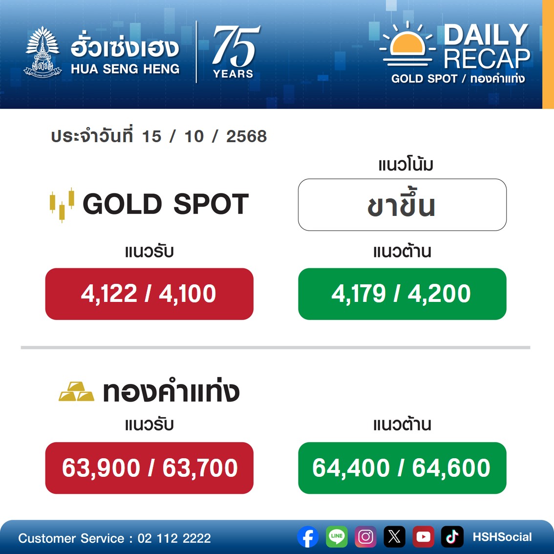 ราคาทองวันนี้ 15 ตุลาคม 2568 โดยสมาคมค้าทองคำ ประกาศราคาทองครั้งที่ 1 (เปิดตลาด) เมื่อเวลา 09.08 น. ปรับตัวเพิ่มขึ้นพรวด 300 บาท ทำสถิติสูงสุดเป็นประวัติการณ์ครั้งใหม่บริเวณ 64,450 บาท หลังจากเมื่อวาน(อังคาร) มีการประกาศราคาทองทั้งหมด 30 ครั้ง รวมเพิ่มขึ้น 1,400 บาท สูงสุดเป็นประวัติการณ์บริเวณ 64,350 บาท