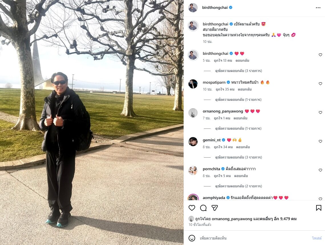ล่าสุดในวันเดียวกัน พี่เบิร์ดได้ออกมาอัปเดตอาการด้วยตัวเอง ผ่านดฟซบุ๊ก Bird Thongchai เพื่อคลายความกังวลของแฟน ๆ โดยระบุข้อความว่า