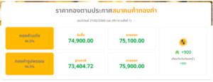 ทองรูปพรรณ ขายออกบาทละ 75,900.00