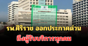 วันที่ 19 มีนาคม 2569 โรงพยาบาลศิริราช ได้ออกประกาศแจ้งผ่านเพจ Siriraj Hospital ถึงผู้รับบริการโรงพยาบาลศิริราชทุกคน โดยระบุว่า