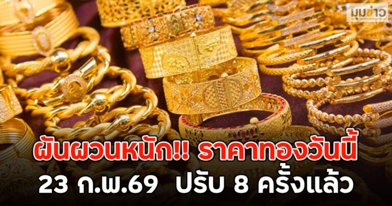 ผันผวนหนัก!! ราคาทองวันนี้ 23 ก.พ.69 ปรับ 8 ครั้งแล้ว